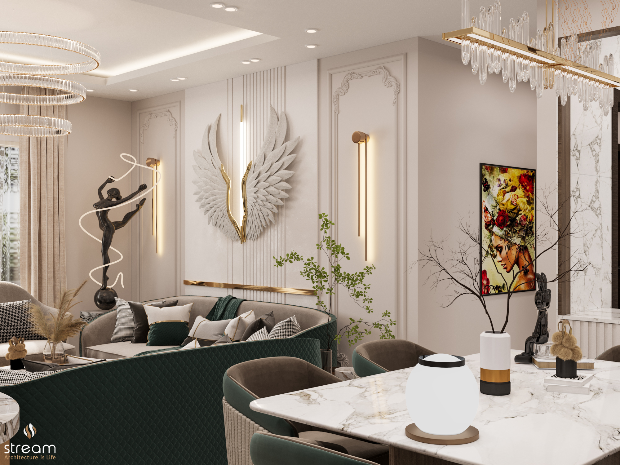 Stream is one of the most important offices in this category , specialized in residential interior design , providing a high level of luxury in various new ways ( Ground floors with private garden - Duplex - triplex - penthouses - studios and roofs ) .